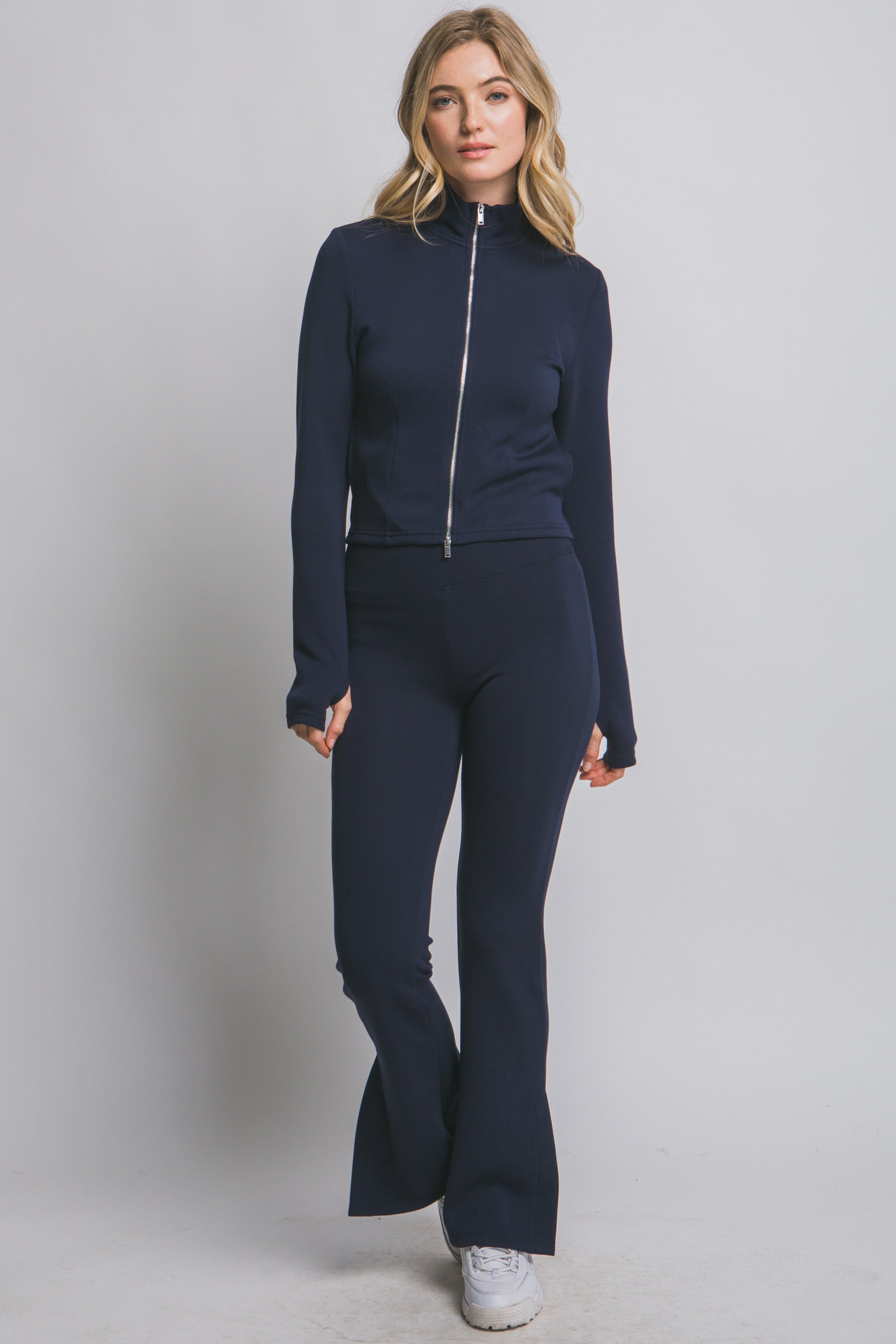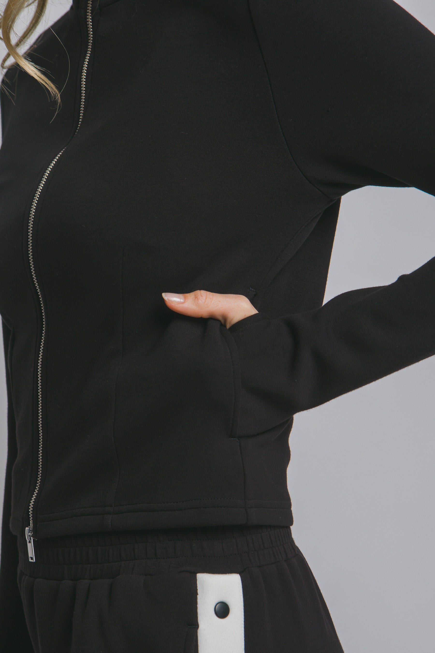 Chamarra deportiva con cierre metálico y ajuste entallado