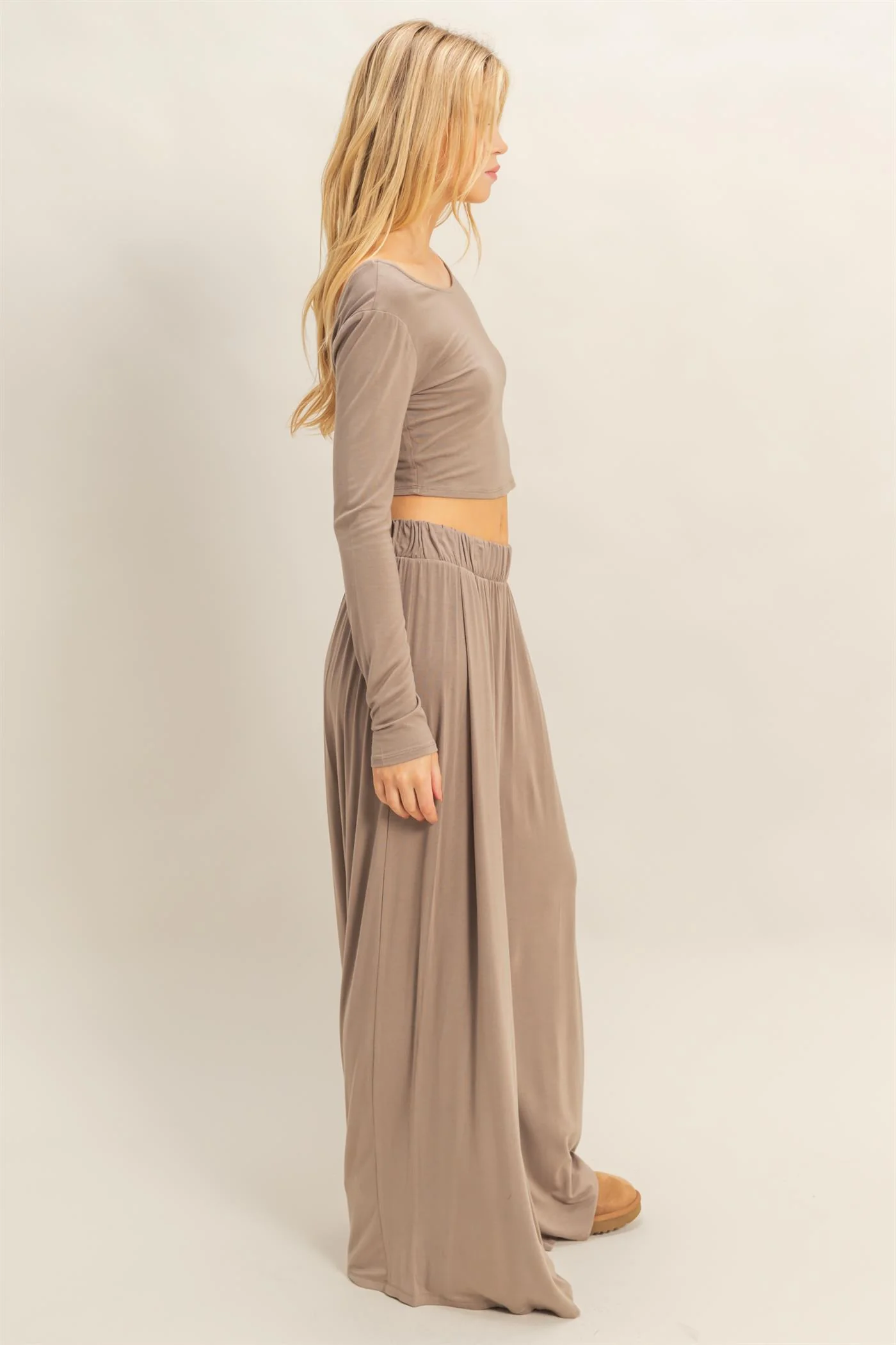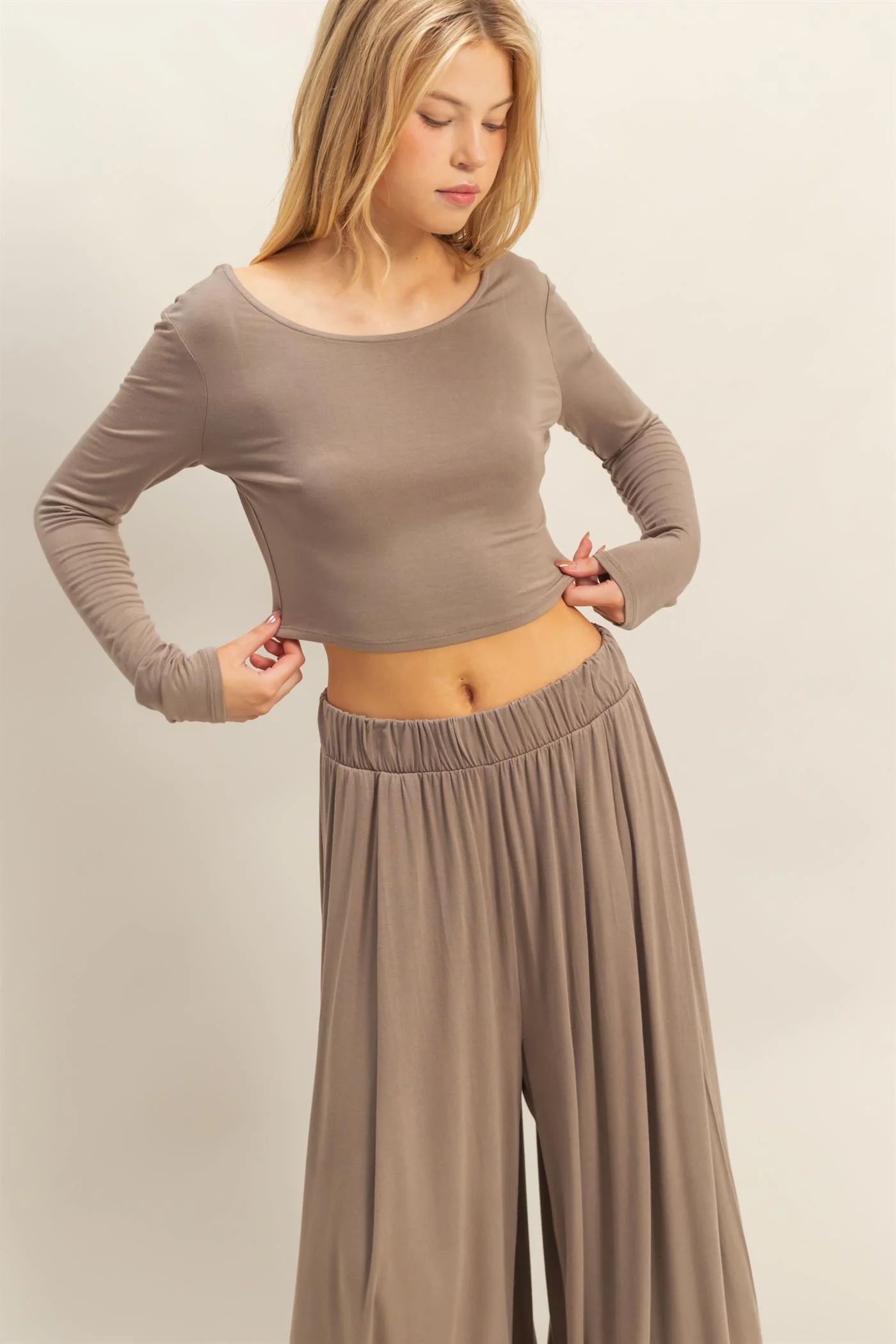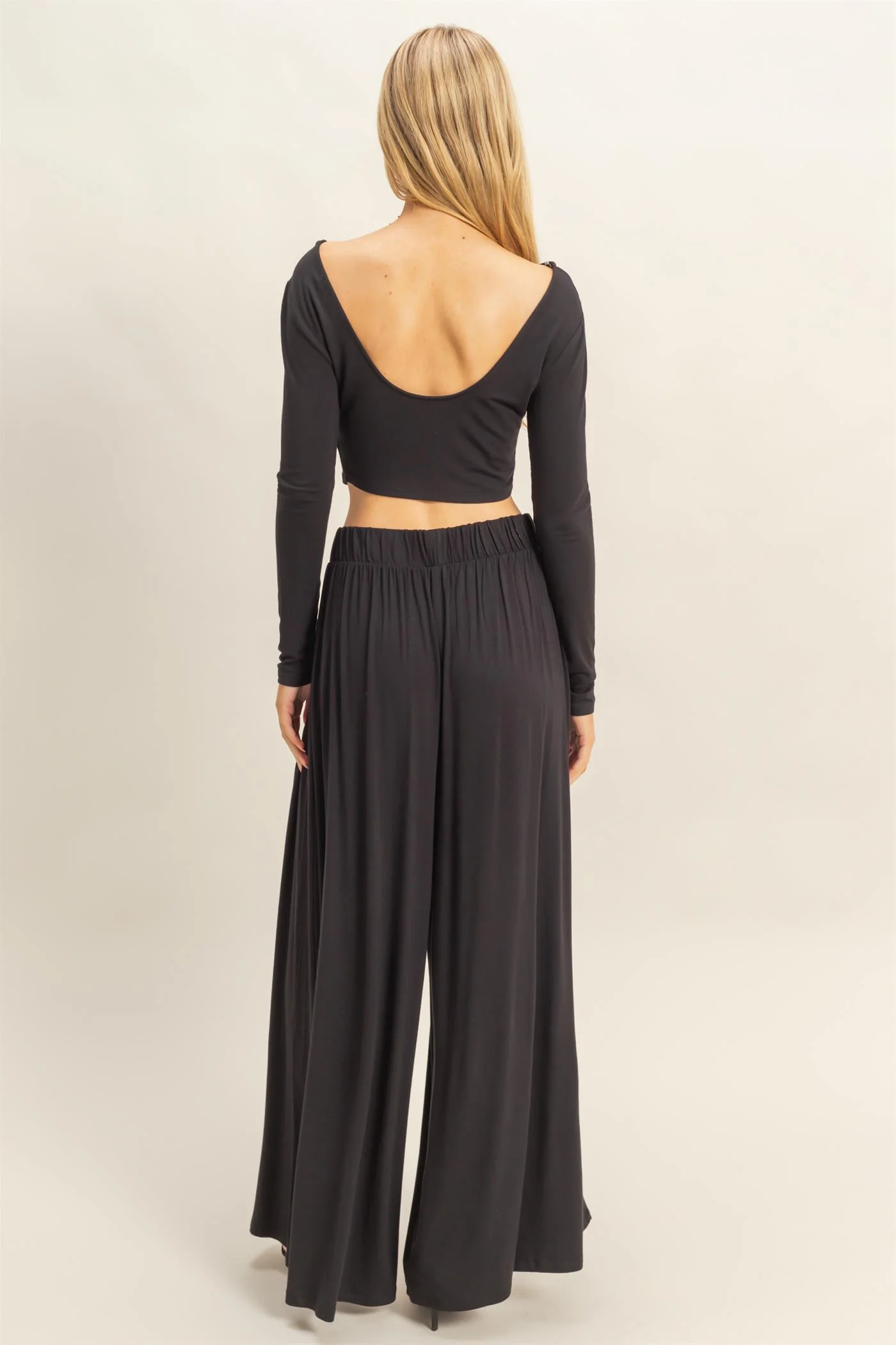 Realza tu armario con este elegante y sencillo conjunto que incluye un elegante top corto de manga larga y un pantalón largo fluido. El top, con un sutil escote barco, realza tu silueta, mientras que la cintura fruncida del pantalón promete comodidad y estilo. Este conjunto logra el equilibrio perfecto entre simplicidad y sofisticación, haciéndolo versátil para diversas ocasiones.