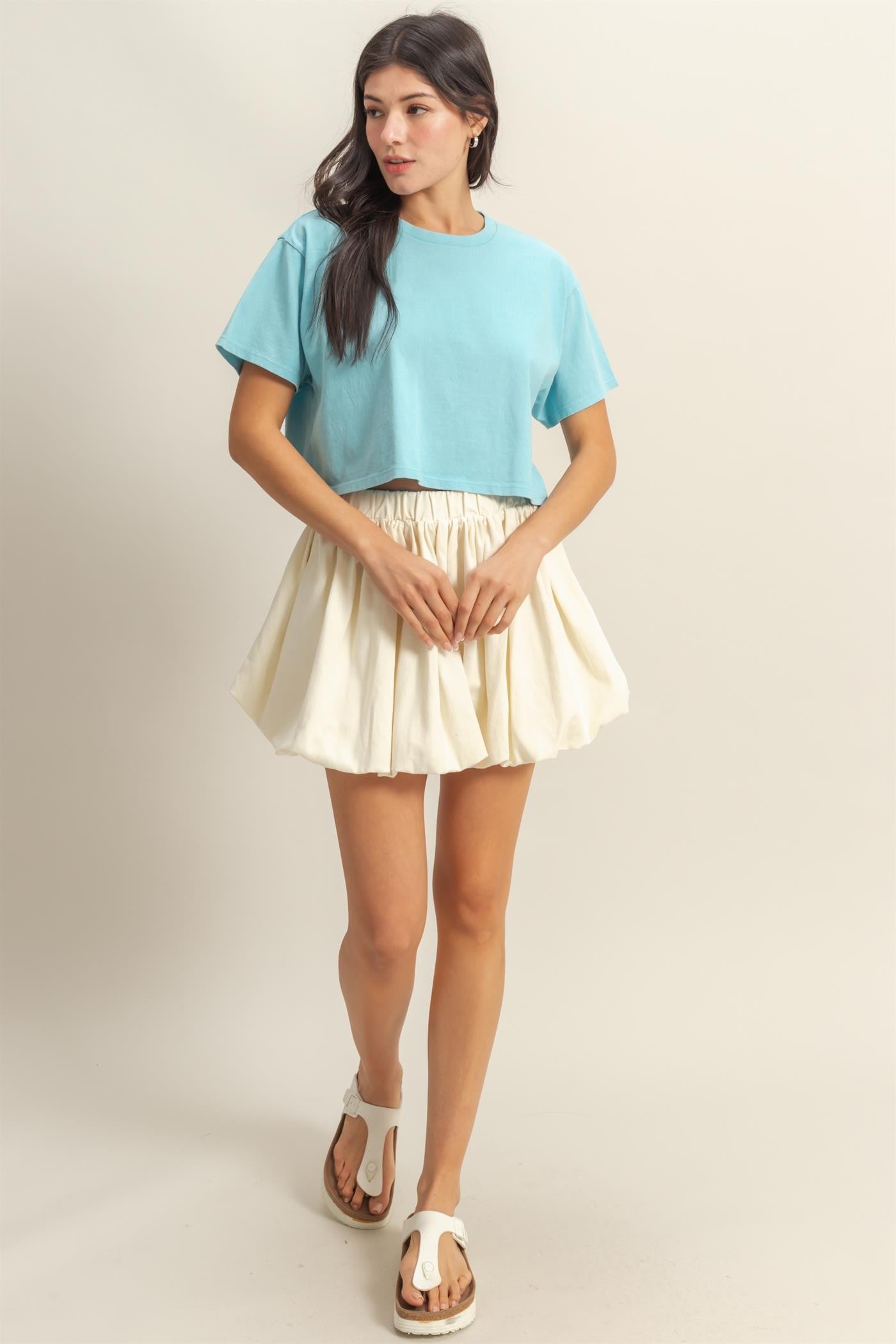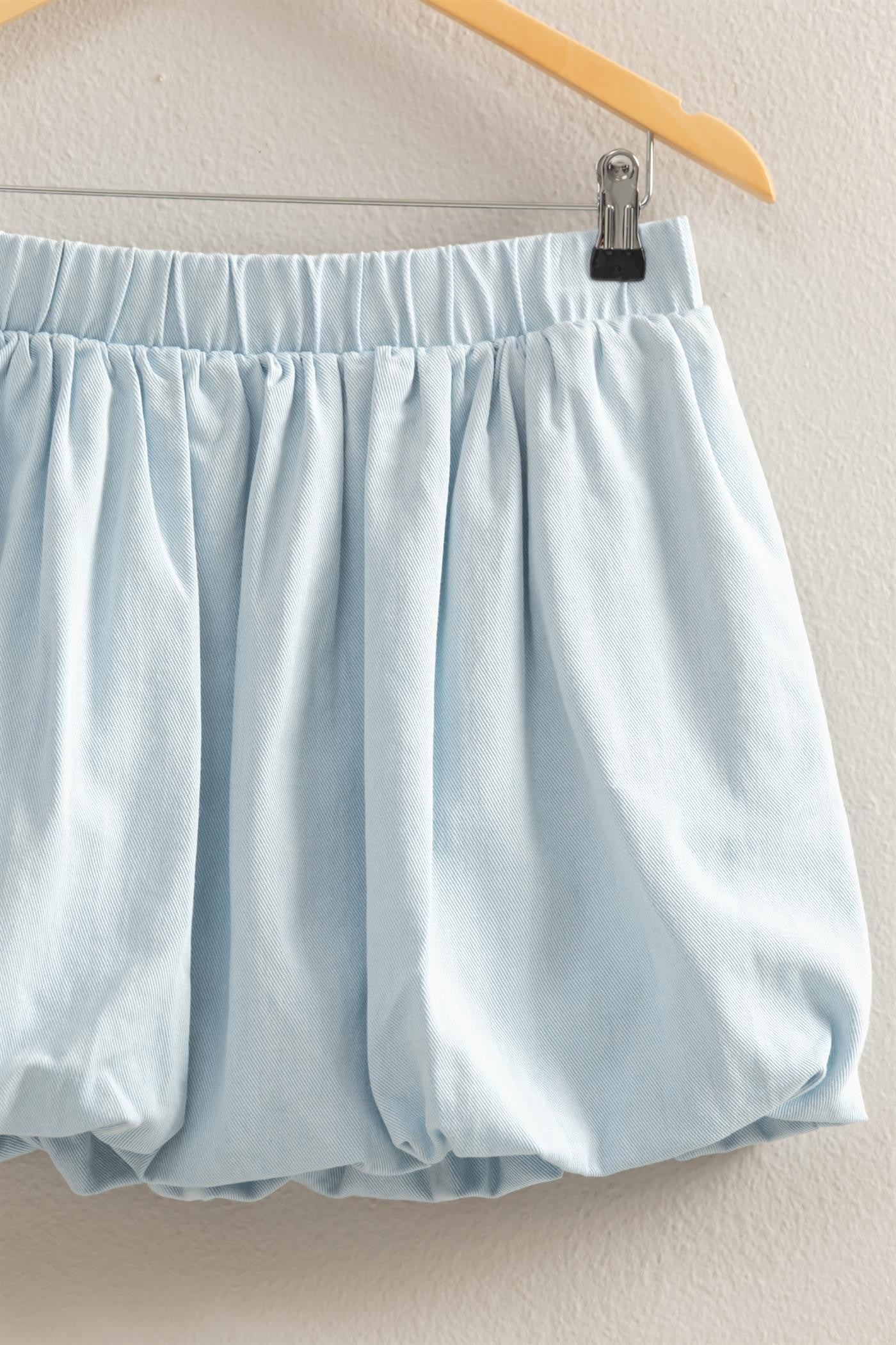 Añade un toque de frescura y dinamismo a tu look con esta falda corta estilo globito. Su diseño abullonado y la cintura elástica la hacen perfecta para un outfit cómodo y con mucho estilo.