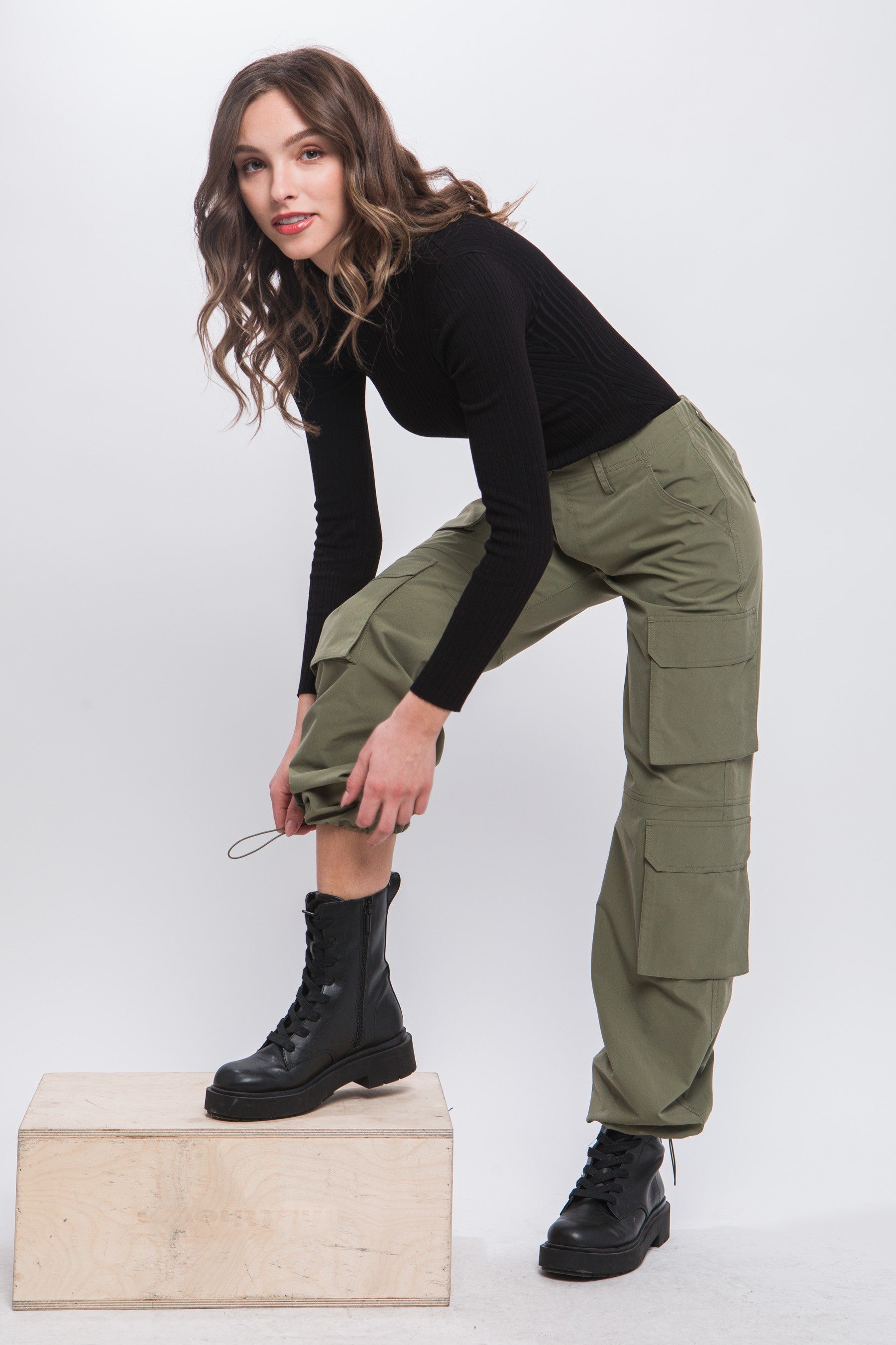 Pantalón cargo con ajuste en tobillo y múltiples bolsillos