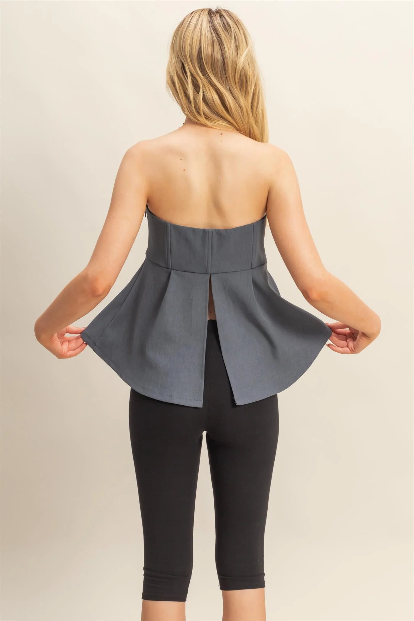 Revelando la esencia de la sofisticación urbana con un toque informal, este conjunto incluye un elegante top peplum. Diseñado con una estructura sin costuras y un sutil toque en la cintura, crea una silueta favorecedora, perfecta para transmitir confianza.